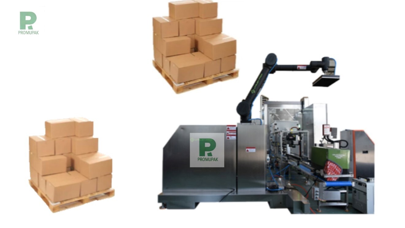 Cпособный выполнять сложные манипуляции с высокой точностью и эффективностью. Благодаря высокой точности, гибкости и скорости он обеспечивает точное размещение коробок и выполнение всей операции по укладке на поддоны.