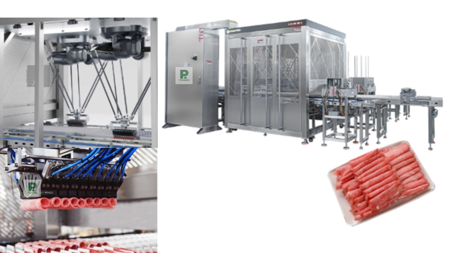 Это оборудование в основном используется для сортировки и упаковки всех видов мясных рулетов и состоит из конвейерной ленты для подачи мясных рулетов (4 ряда), автоматического механизма выгрузки лотков (2 комплекта), конвейерной ленты для выгрузки лотков (2 ряда), дельта-робота (2 комплекта).
